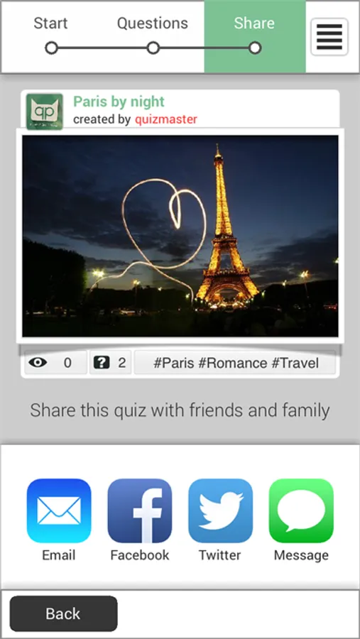 Ready to create your first quiz and post it online? More than 10,000,000 questions have already been answered. Should yours be the next?