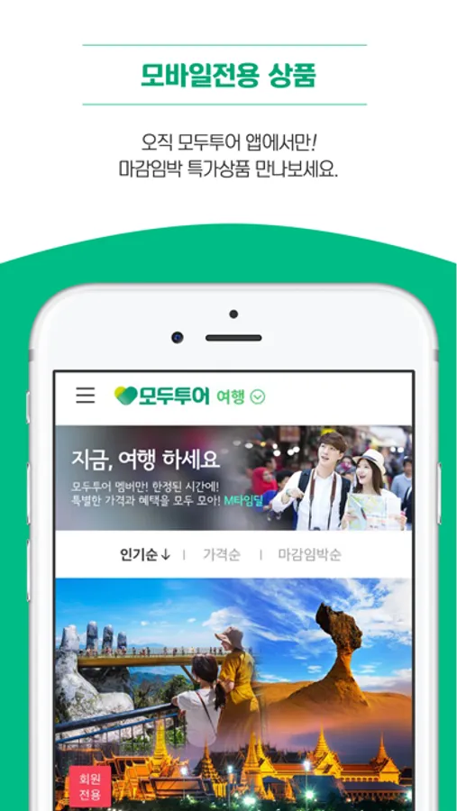 언제 어디서나 스마트한 여행상품 검색이 필요할 땐 모두투어로 오세요