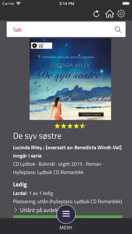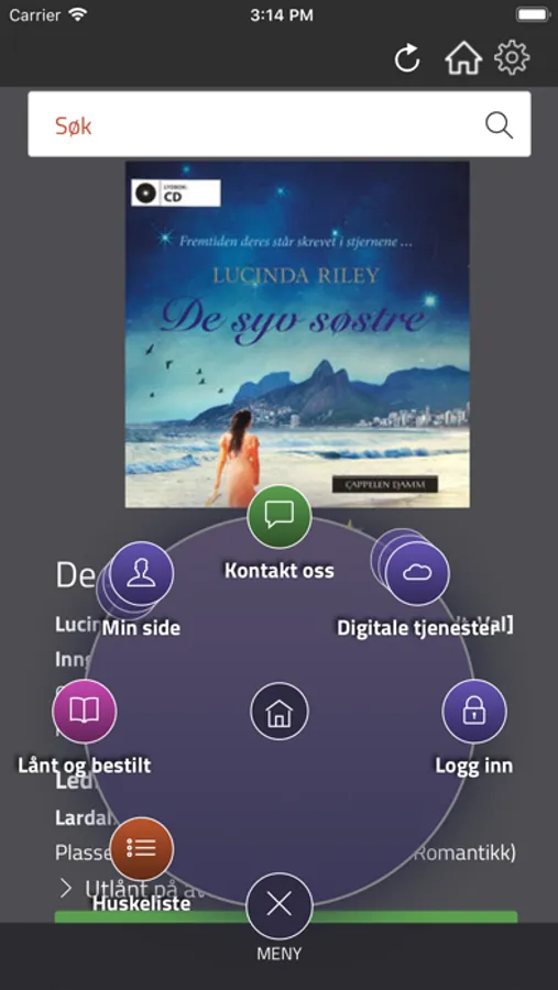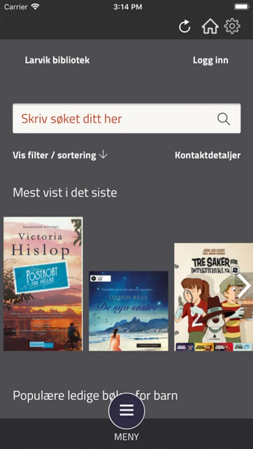 Du kan raskt og enkelt velge nytt bibliotek fra menyen øverst på skjermen. Appen gir tilgang til alle bibliotek som benytter