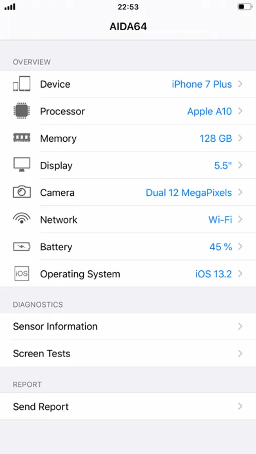 Hardware and software information utility for iOS based devices. Based on the extensive hardware knowledge of the AIDA64 for Windows application, AIDA64 for iOS is capable of showing various diagnostic information for phones and tablets including: