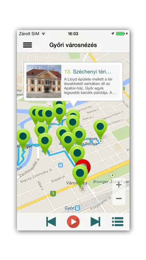 Nem csak a látnivalókat mutatja be az alkalmazás, de a látnivalókat végigjáró túrát is jól leírja, térkép-, utcakép támogatással, sok fotóval, szöveges háttér információkkal és néhány túra esetén hangos idegenvezetéssel. A túra kezdő pontjához útvonalterv készítése is egy kattintással indítható.