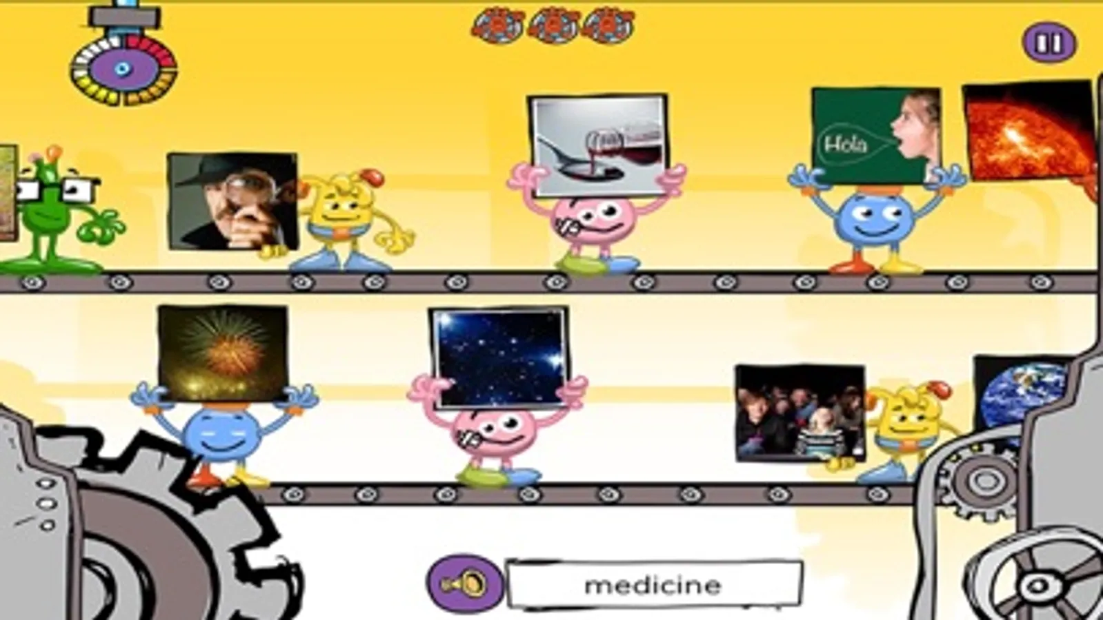 • Challenges players by increasing the language level, game speed and points available as they progress through each level and stage