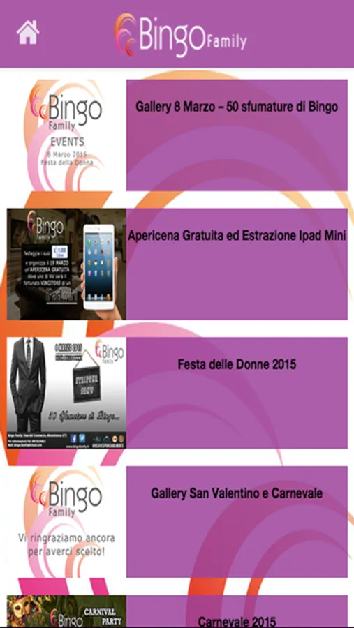 La struttura Bingo Family è un centro polifunzionale di intrattenimento - Game - Food - relax. Scarica l'app e rimani sempre aggiornato sui premi live, sulle vincite e sulle nostre promozioni. Gioca con moderazione, il gioco è vietato ai minori di 18 anni e può causare dipendenza patologica. Per info e probabilità di vincita visita aams.gov.it .