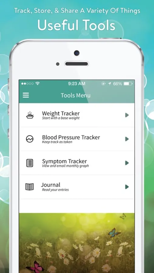 • Journal - keep a daily journal, including photos, of your journey. At any time, your entries can be shared via email directly from the app. This information is helpful to share with physicians, nutritionists, personal trainers or simply to use as a tool to stay organized.