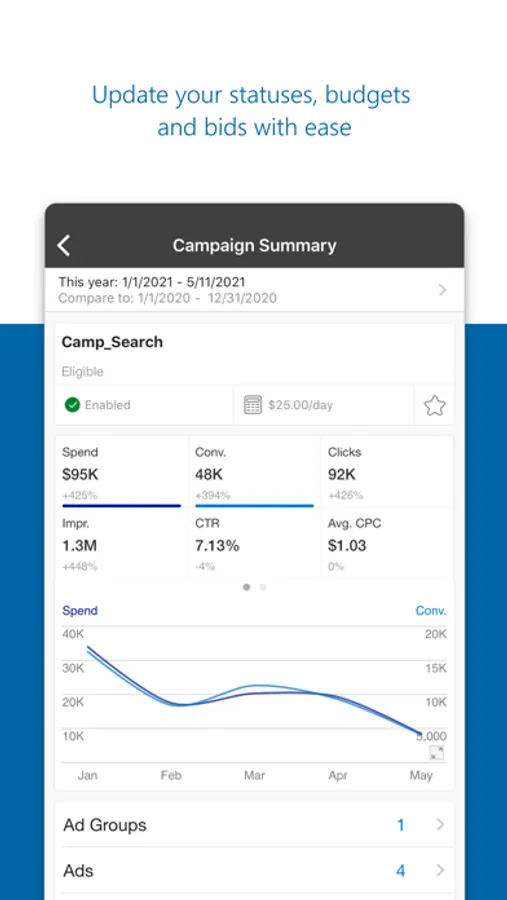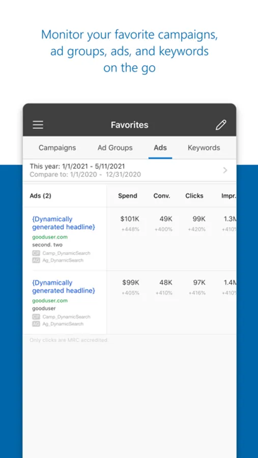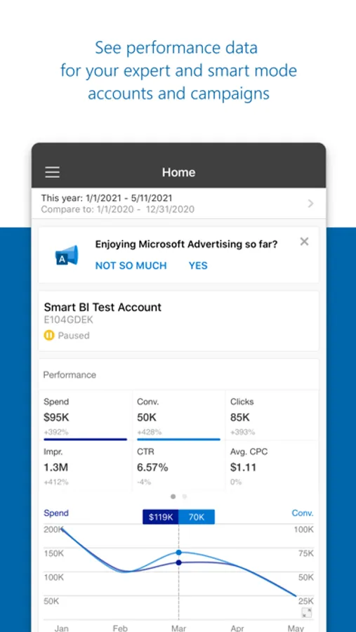 Microsoft Ads help you stay on top of your advertising campaigns while you're on the go. Keep your finger on the pulse of your accounts all from your smartphone or tablet.