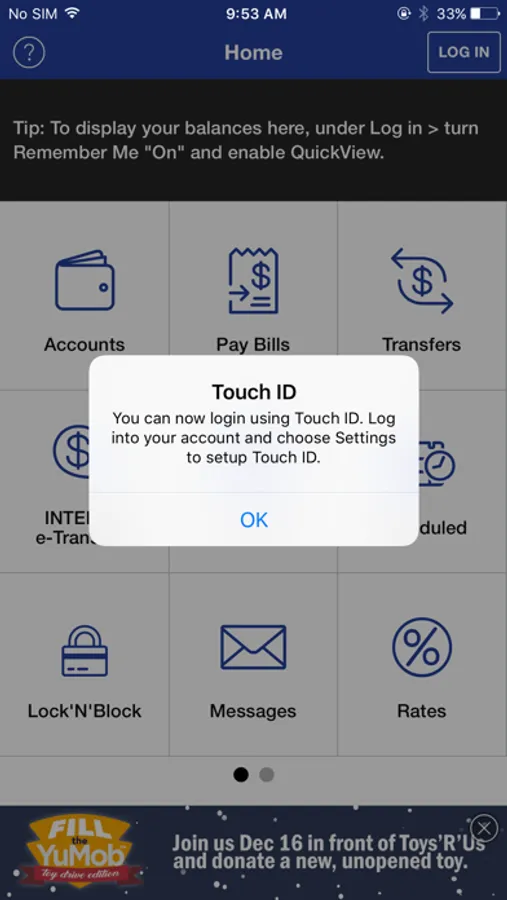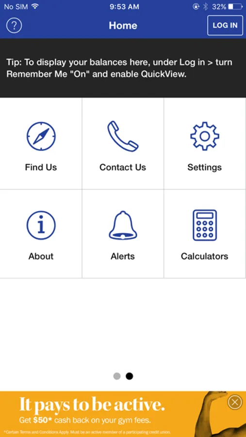 To take advantage of the full functionality of this app, you must already be registered and have logged in to online banking. If you are not an online banking member, you can still use the Branch/ATM locator, Rates and our Contact Us information.