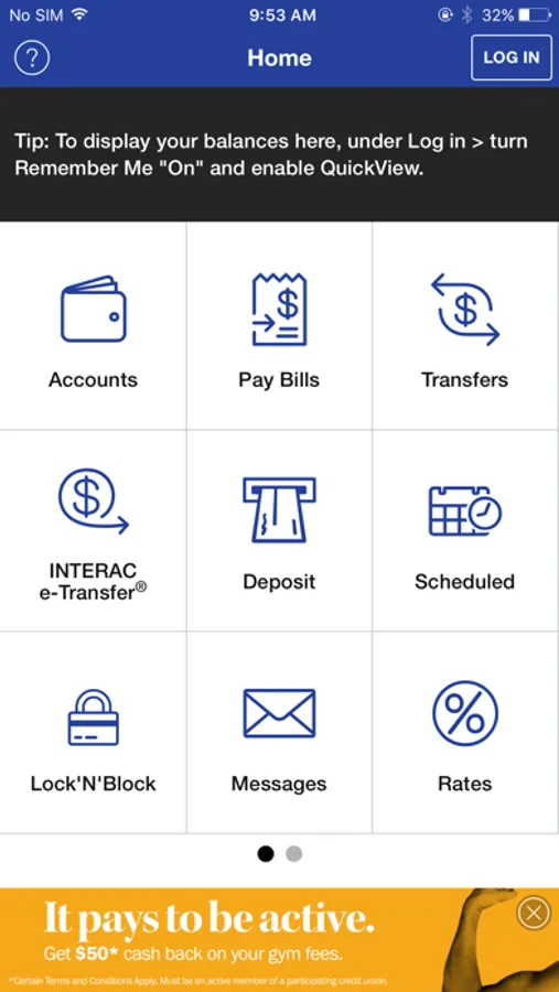 View account balances without logging in when QuickView is enabled.