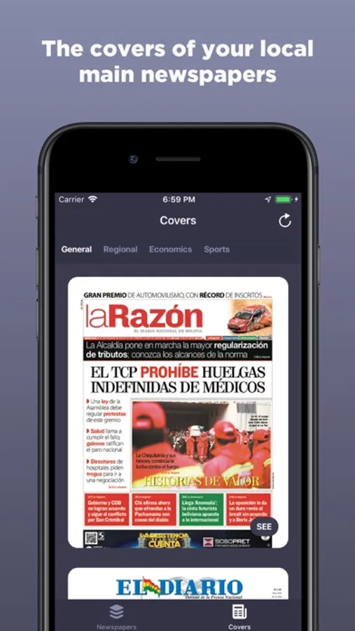 The logos and content of each newspaper or magazine are the exclusive property of the same. Bolivian Newspapers only use them in order to be recognized by readers who use the application, and access the web pages of each newspaper.