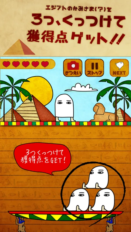■メジェドさんが積みあがったら、すかさず「さつえい」ボタン!