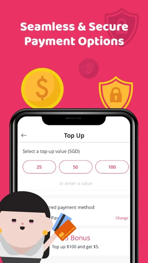 A secure wallet where you can top-up, store, and earn cashback. Go cashless with RydePay (Credit/debit card or RydeCoins) for a seamless experience.