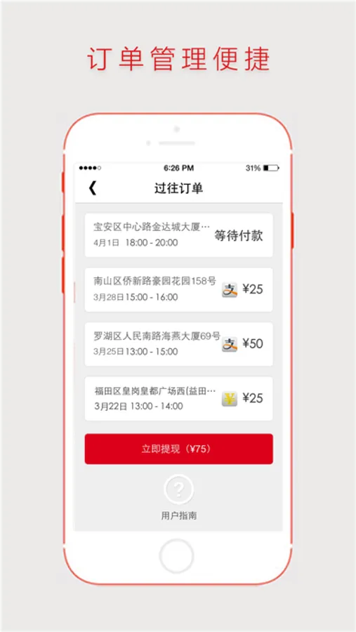 高收入高自由度:接入支付宝,应用内收纳订单收入,瞬间到账,放心提取收入!