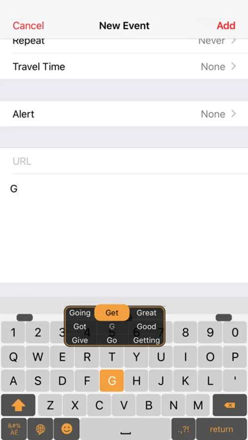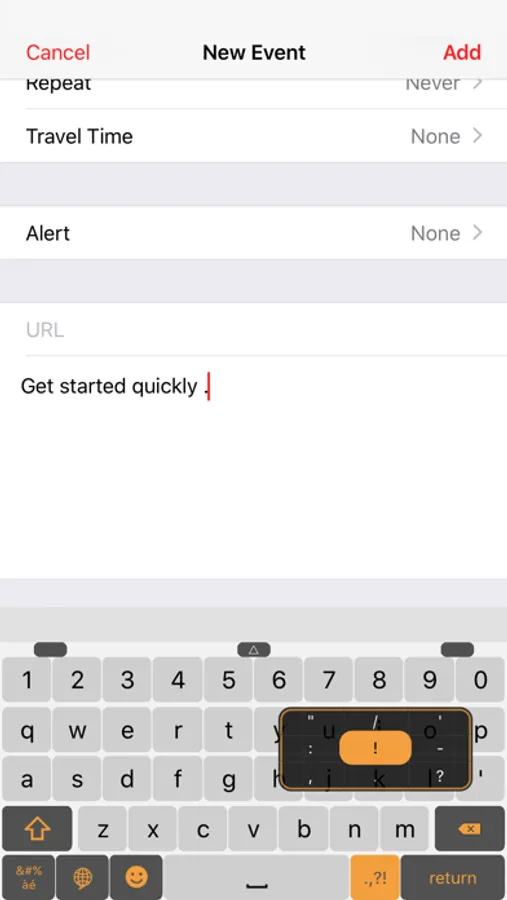 Press and hold on a key to get access to predicted words and other functions. Simply swipe your finger up, down, left or right to move the selection and lift your finger to select. All in one motion*.