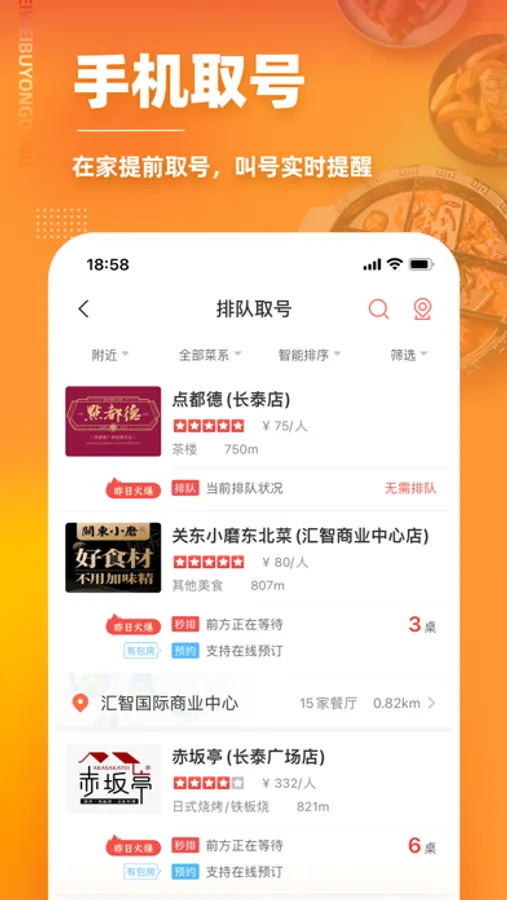 美味不用等,本地头牌美食指南!一款解决火爆餐厅排队问题,并能实现1秒预约订座的app!
