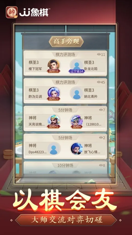 汇聚全国象棋高手,刺激比赛斩将夺帅,楚河汉界,等你来战!