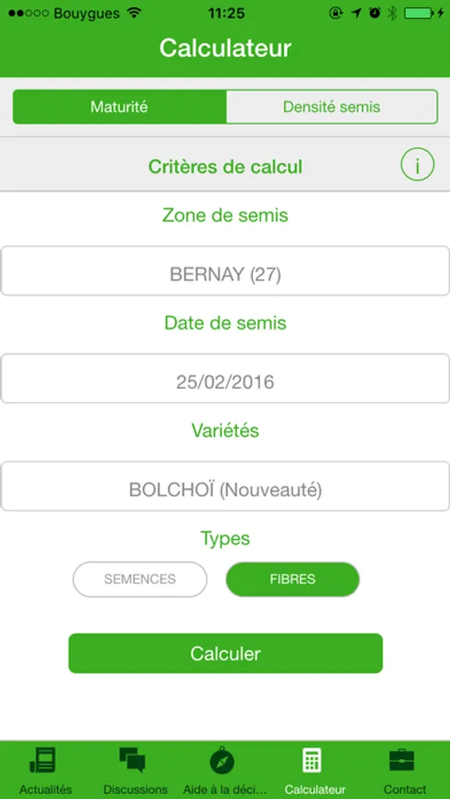 - Espace calculateur qui regroupe le calcul prévisionnel des dates de floraison et d'arrachage et de la densité de semis