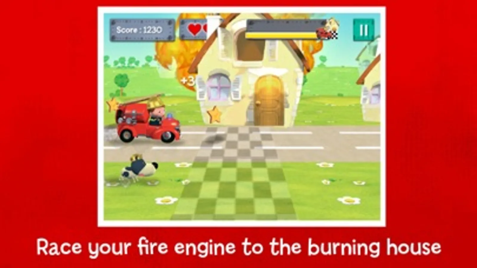 ¤ "Watch out ahead!" Race your fire engine to the burning house to put out the fire, but avoid obstacles!