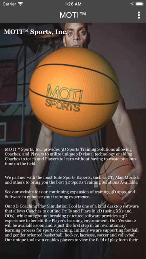 A sample of the quality of instruction employed in this training series is exhibited in the "Training" segment of the app which utilizes, 3D animation generated from motion capture technology from MOTI™ Sports, along with video to create an unparalleled training experience for basketball athletes.