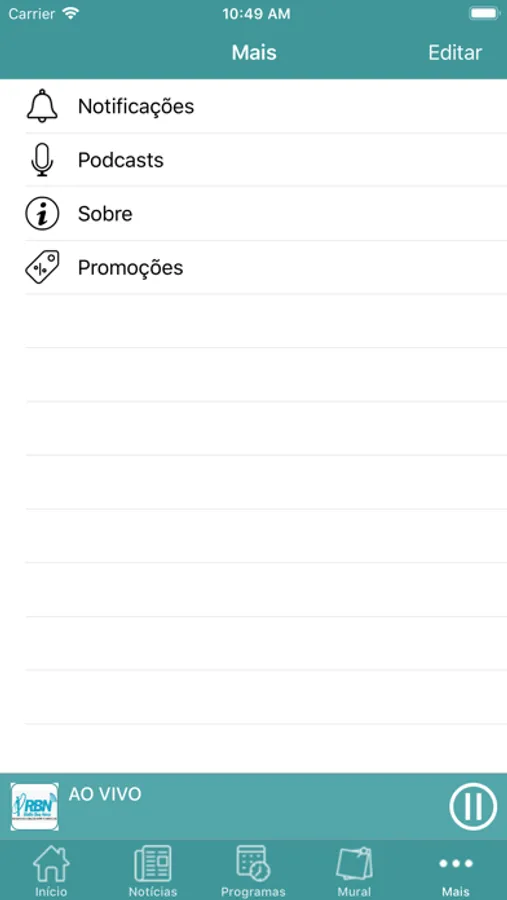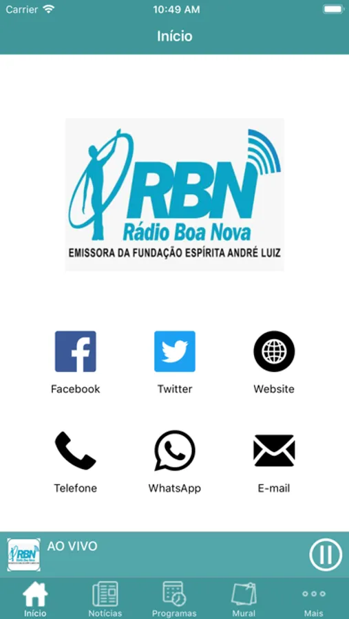 - Ouvir a programação da Rádio ao vivo