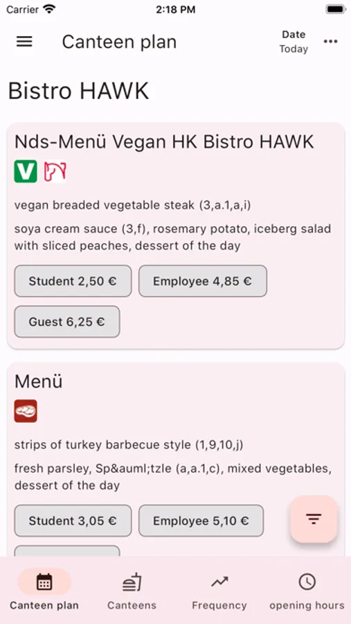 Bei dieser App handelt es sich um die offiziellen Speiseplan-Daten für alle Mensen des Studentenwerks Göttingen. Es werden die Daten angezeigt für: