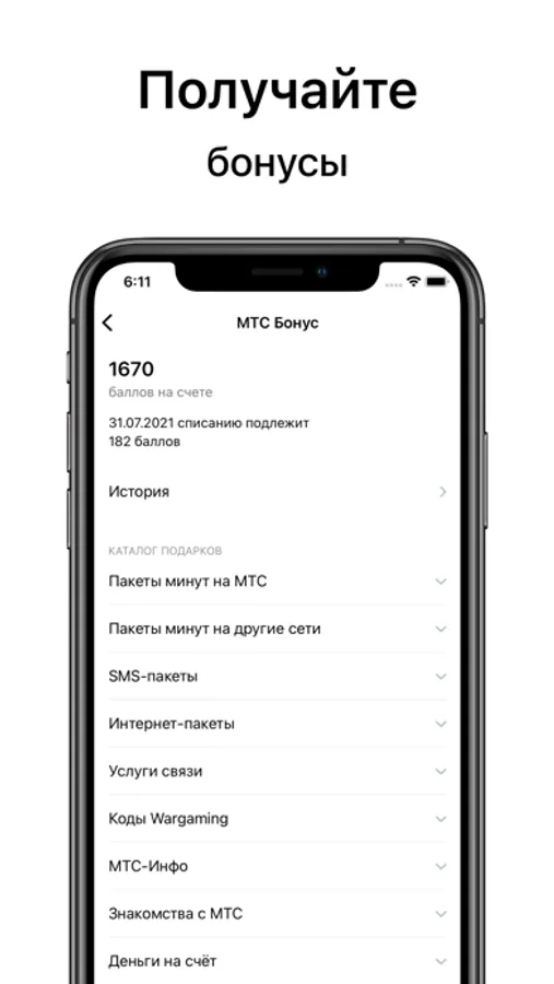 – обменивать бонусные баллы в программе «МТС Бонус»;