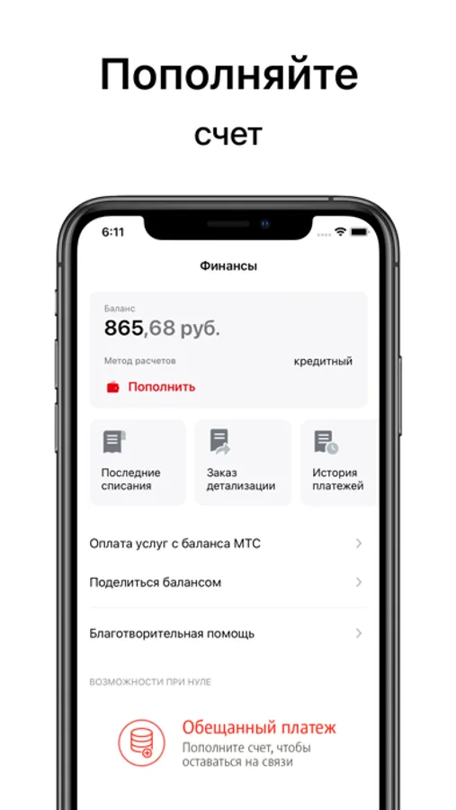 – пополнять счёт, подключать и настраивать автоплатежи, вносить платежи по рассрочке.