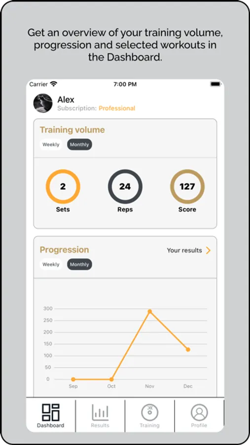 The app provides coaching functionality where coaches can keep track and register training for clients.