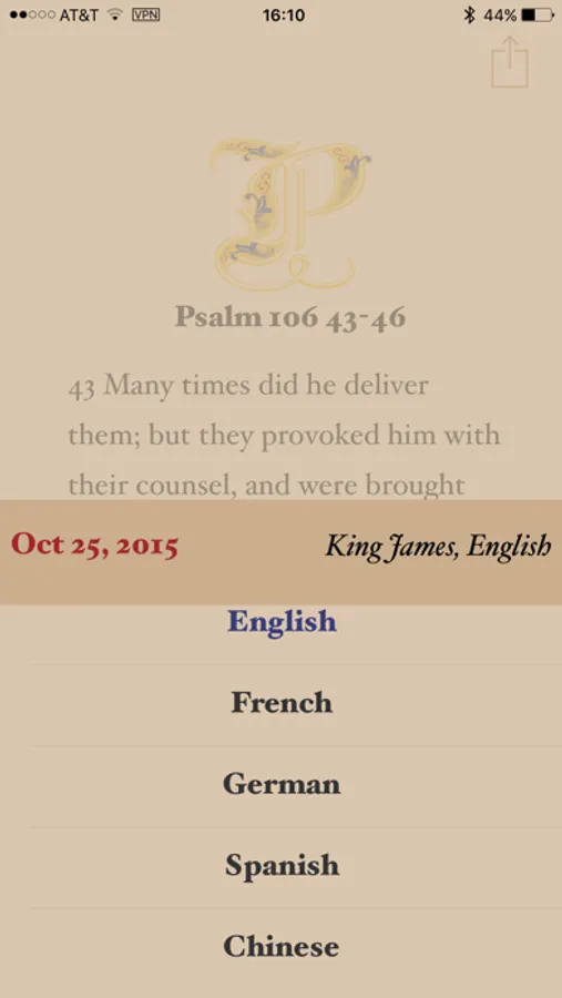 A Bible verse, delivered daily in English, French, German, Spanish or Mandarin.
