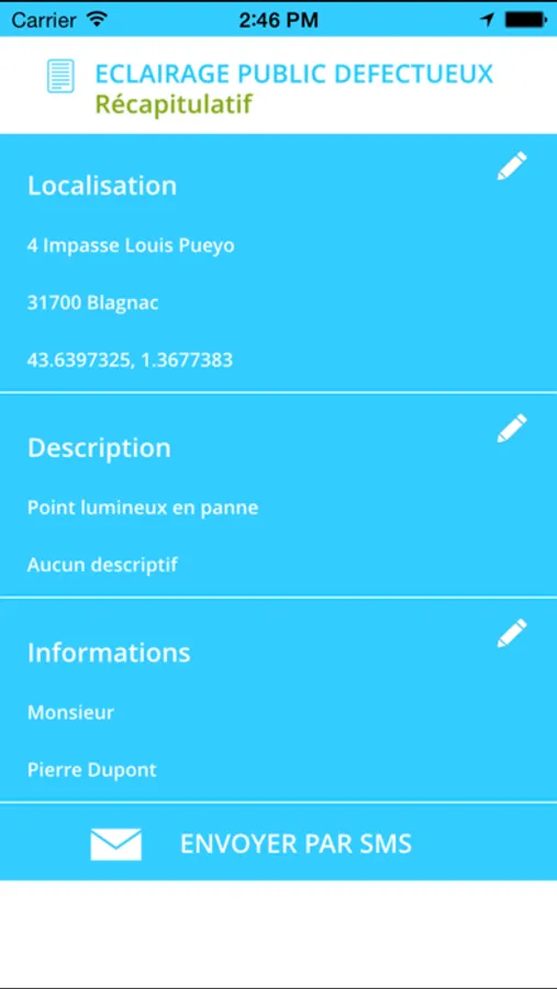 Présentez-vous, laissez-vous géolocaliser, sélectionnez le type de panne, et envoyez un sms pour aider le Syndicat Départemental d'Energie de Haute-Garonne à maintenir un éclairage public de qualité.