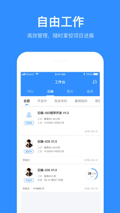 【一键发布开发项目】专属项目经理合作,超速读懂项目需求,将整个软件系统通过任务形式众包出去,12小时内进入开发,项目成功率97%,成本只有传统外包一半。