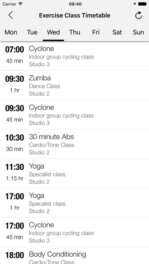 Get real-time access to your centre’s timetable for classes, including times, trainers, rooms and class description.