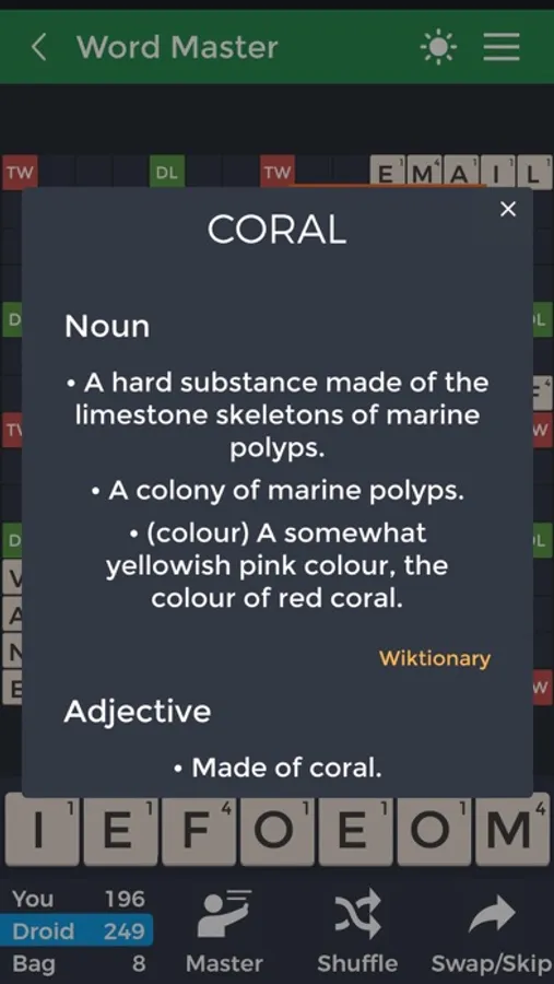 Swipe your finger across any word on the board and get its dictionary definition. (Internet required)