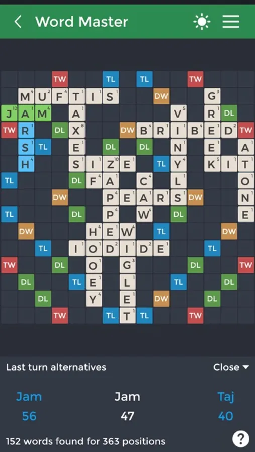 After each turn, you will be able to see which words you could have played. Learn how to use the bonus squares on the board and the standards for the formation of words.