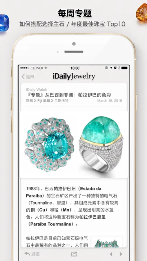 「每日珠宝杂志 · iDaily Jewelry」是最具影响力的中文珠宝杂志 App,由专业珠宝编辑每日为你呈现全球最美的珠宝作品、High Jewelry 大片、宝石知识和珠宝历史专栏,是每一个女生都不可错过的珠宝手册。