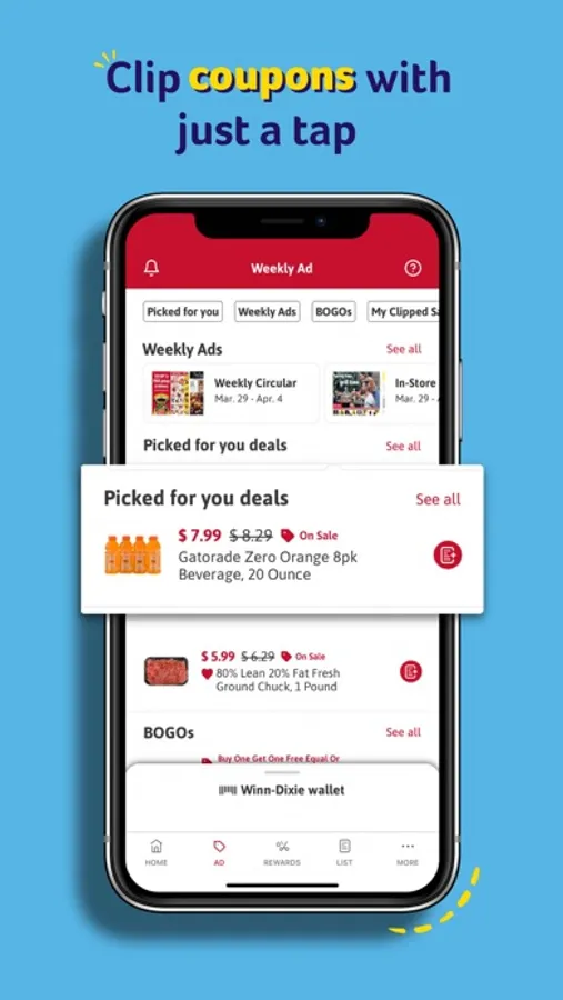 Say farewell to ordinary shopping and embrace extraordinary deals! With the Winn-Dixie app, access coupons, our weekly ad, and personalized offers right at your fingertips. You'll be saving even more on your favorite products with tailored deals just for you, plus a dedicated Rewards tab for coupons and points. And the cherry on top? Discover BOGO offers in the Weekly Ad for your store and easily add them to your shopping list.