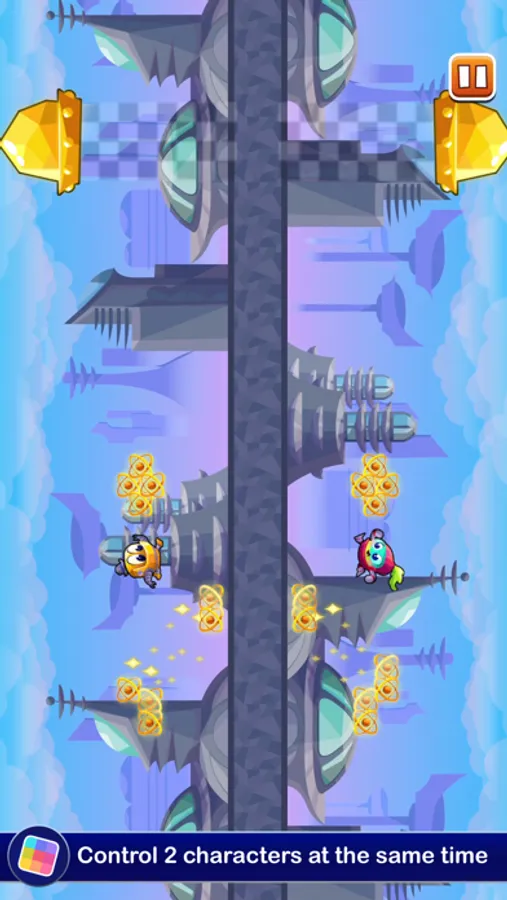 Double the Danger: Wrap your brain around controlling two characters at the same time. Try to avoid hazards and defeat the enemies that block your way!