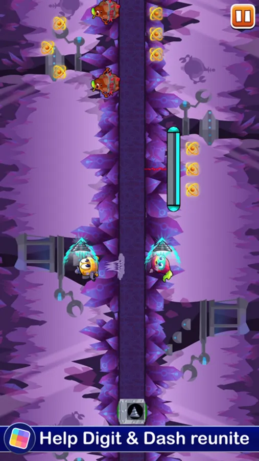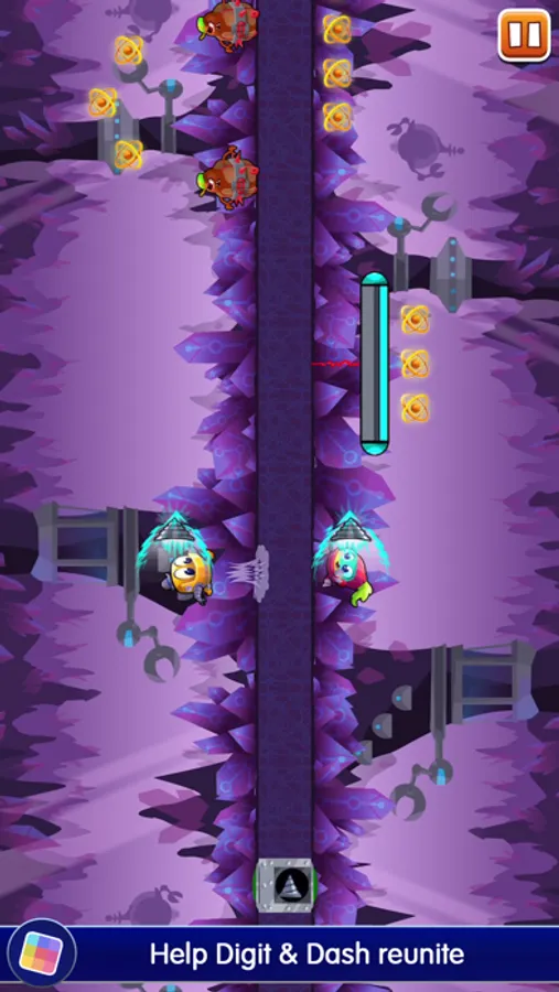 Digit and Dash may be split up, but they can still give each other a boost with some well-timed ground pounds. You'll need quick reflexes and a sharp mind to keep both of our heroes safe. Collect molecules and badges to master each stage, or just focus on reaching the end intact. Visit five different worlds, each packed with its own challenging tricks and dangers. With simple controls, Digit & Dash couldn't be easier to play. Coordinating the duo well enough to see them reunited is another matter entirely! Are you up to the task?
