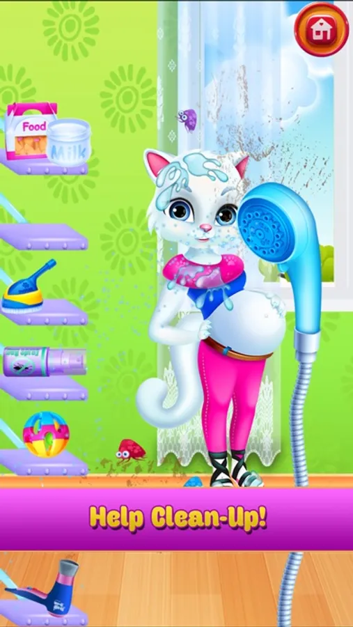 Level 1 : Clean up the pet room and care for the mommy cat!