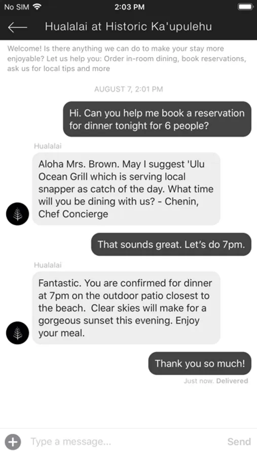 • Chat with the hotel team through in-app messaging