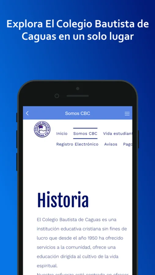 El Colegio Bautista de Caguas cuenta con ofrecimientos académicos desde el nivel pre-escolar a Duodécimo grado que tiene como objetivo lograr una educación de excelencia y preparar académicamente al estudiante para ingresar a la corriente universitaria de su selección. Descarga nuestra aplicación móvil para que obtengas más información sobre nosotros!