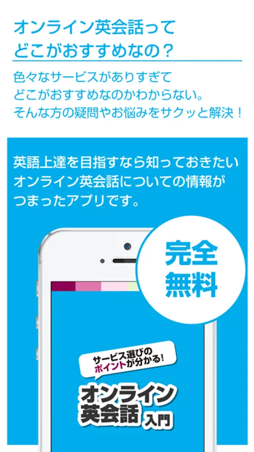 英語上達を目指すなら知っておきたいオンライン英会話についての情報がつまったアプリです。