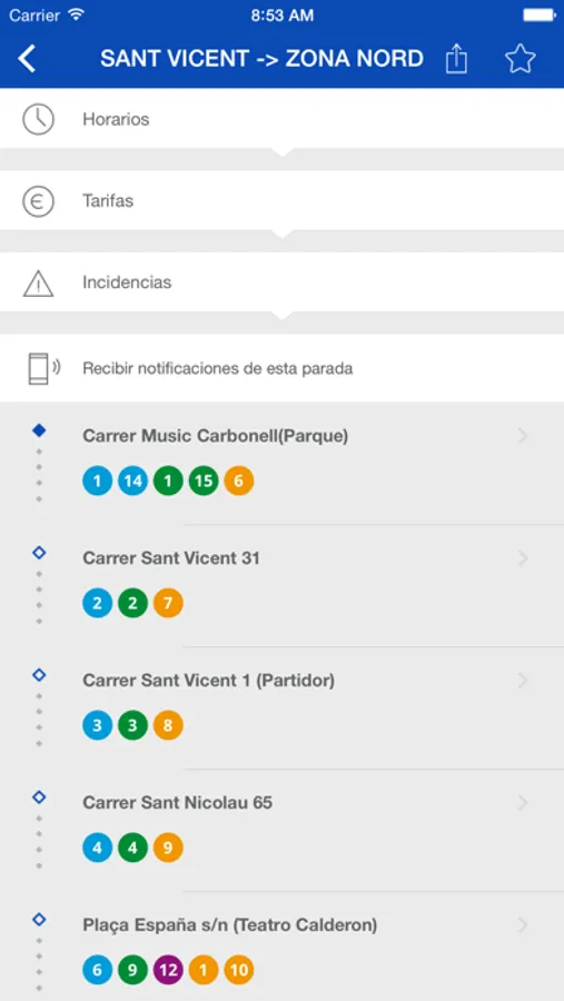 • Favoritos: Para guardar las paradas y líneas que más usas y así acceder más rápido.