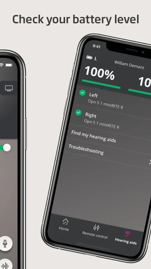 The Oticon ON App provides discreet remote control of your hearing aids, letting you adjust the volume of your hearing aids independently, switch between listening programs, keep an eye on your battery level or even help you find your hearing aids if you lose them.
