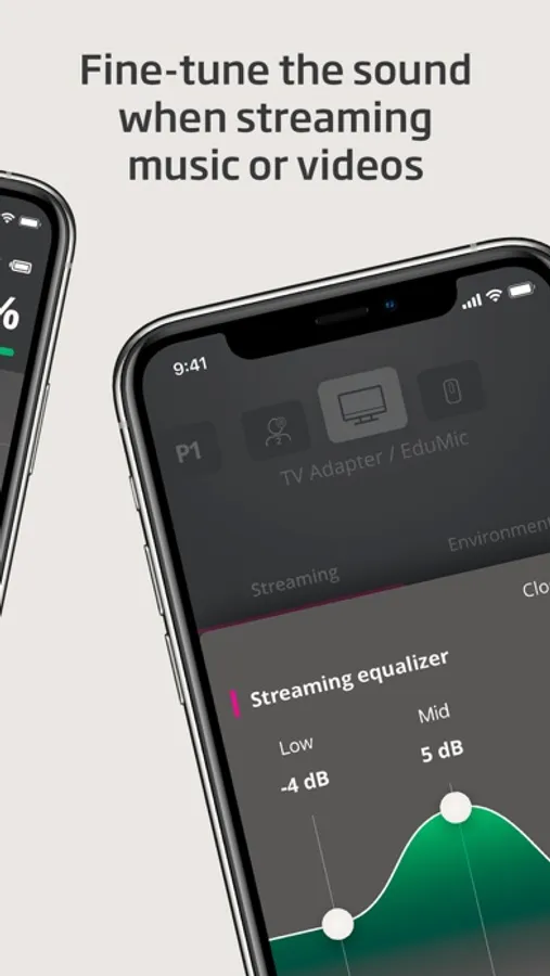 • Fine-tune the sound when watching a movie or streaming audio using the streaming equalizer, for a personalized listening experience. The streaming equalizer is available for all Oticon Bluetooth hearing aids except Oticon Opn and Oticon Siya.