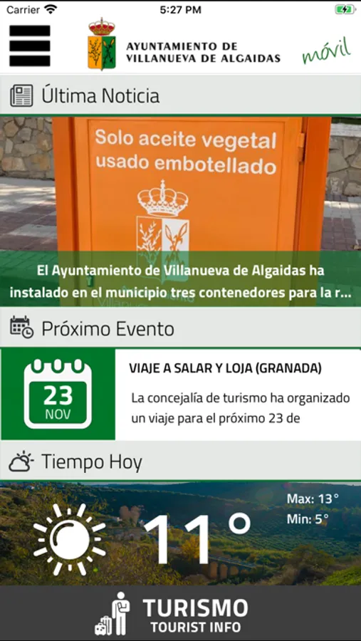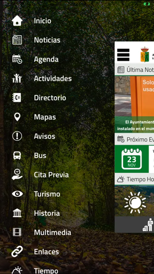Información sobre noticias locales, agenda cultural y deportiva, callejero con mapa y geolocalizador, teléfonos de interés, horario de autobuses, notificaciones...