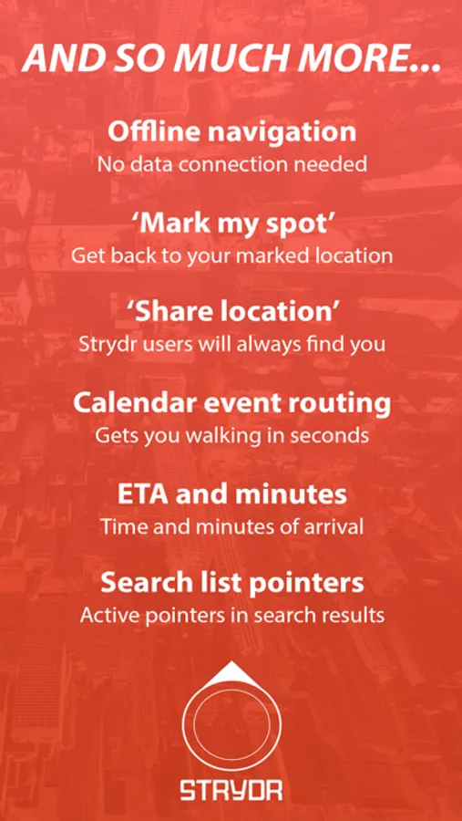 Strydr’s unique combination of features are designed solely with the pedestrian in mind and work with or without a data connection.