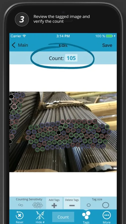 Using advanced computer vision technology, CountPipes tags each counted pipe with a number so you can easily verify and document the results.