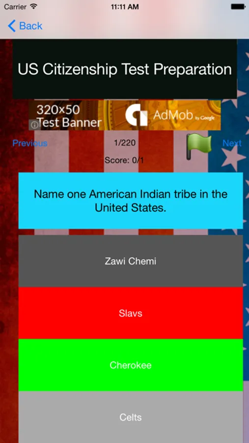 This app helps you practice for the citizenship test.