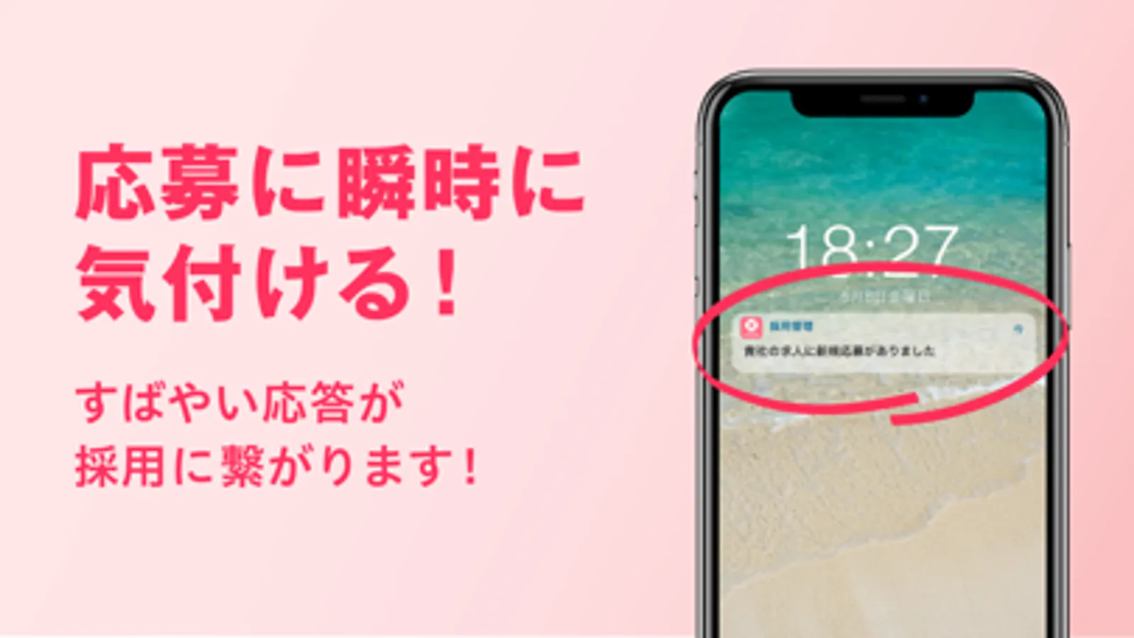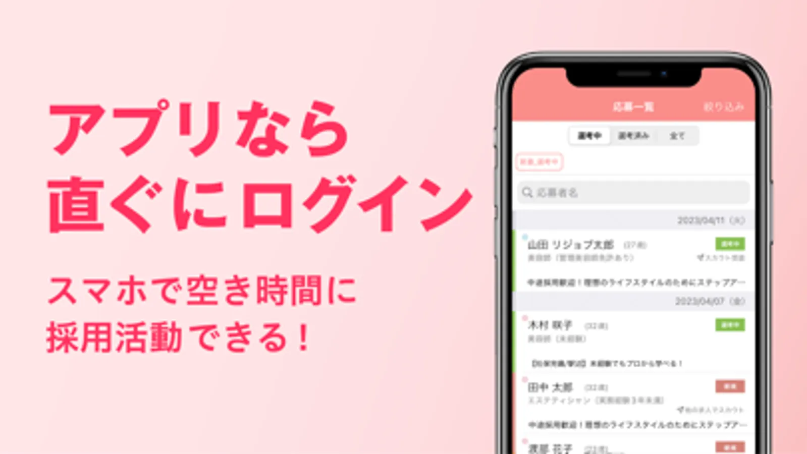 ・新着の応募、選考中の応募者からの連絡は、プッシュ通知でお知らせ!