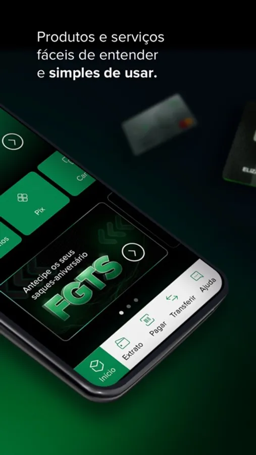 Peça seu cartão de crédito e débito ou use seu cartão virtual. Controle investimentos, faça transferências, gere boletos e realize saques na rede Banco24Horas, tudo de um jeito seguro e transparente. Você ain
