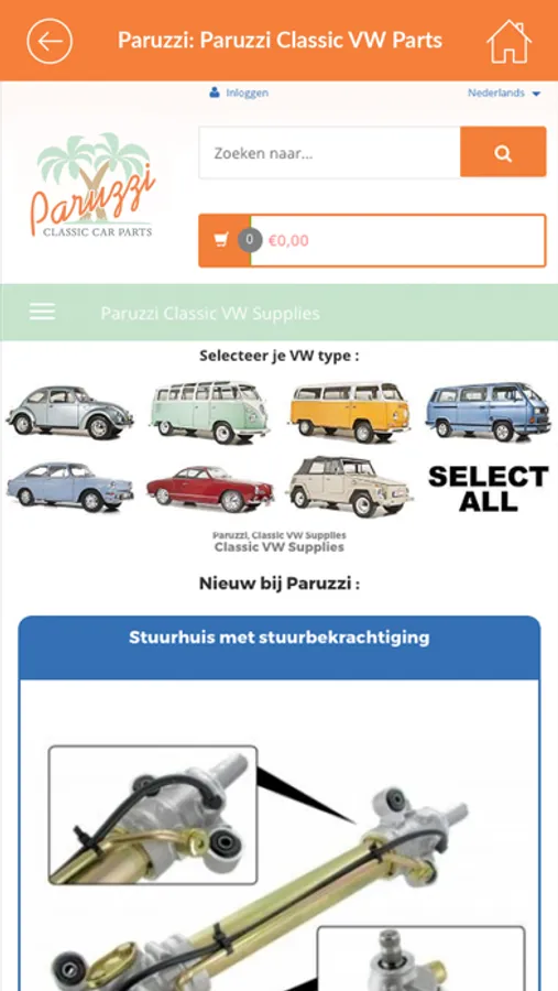 Paruzzi sells parts for all aircooled VWs: Beetle, Karmann Ghia, Type 3, Type 181/Thing, split screen vans, bay window vans and T25 vans.